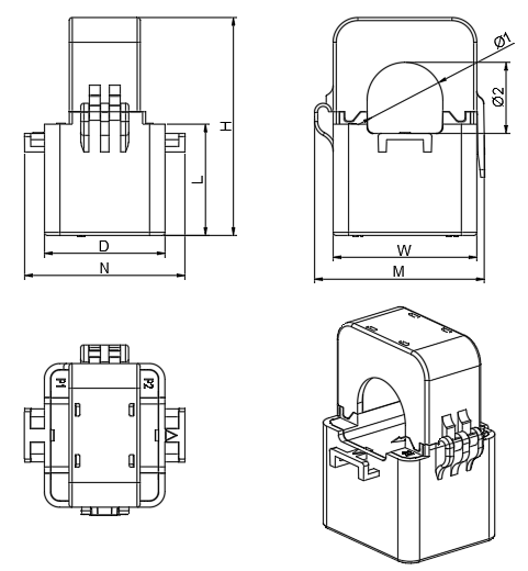 | W | H | D | M | N | L | Φ1 | Φ2 | ||