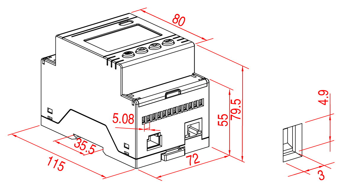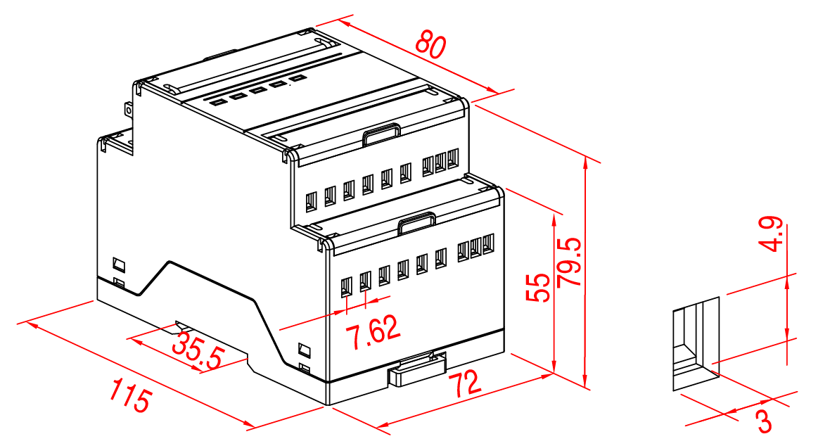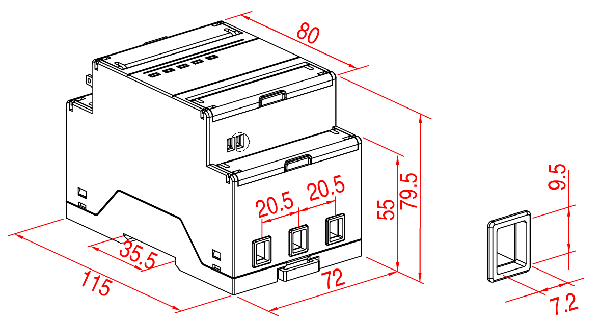 | 外形尺寸 | 115mm×72mm×79.5mm (4模数) | |