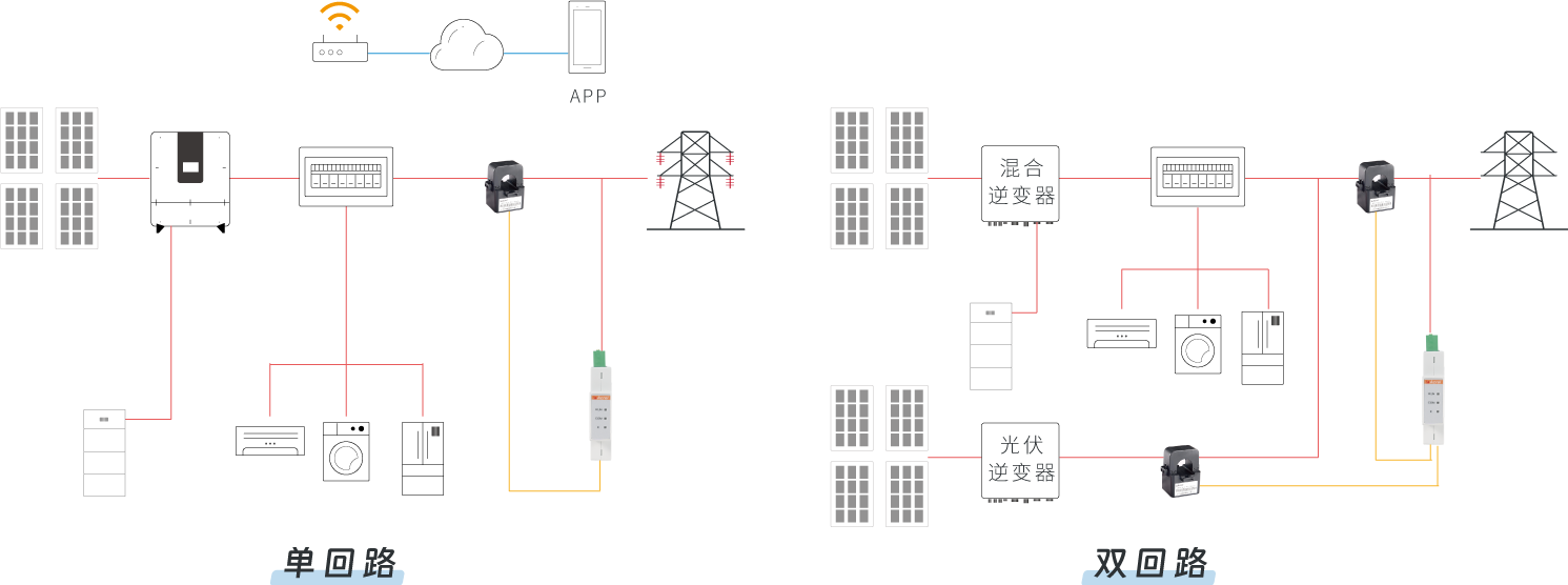 1P,18mm标准导轨式设计,支持一路单相、两路单相、一路三相、两路三相四种应用场景可选。