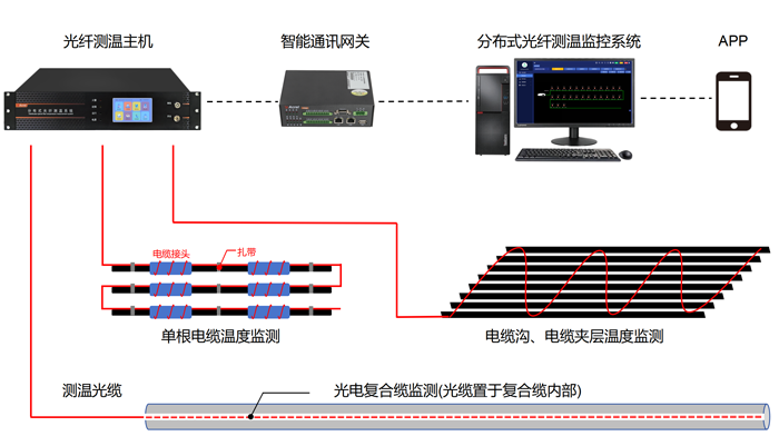 | 对外显示 | RJ45网线连接工控机或选配4.3-10寸液晶屏 展示温度曲线、测温光纤施工质量、网络信息、设备自检、设备信息、报警记录、设备消音等功能 |