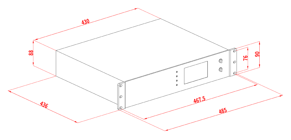 | 尺寸(长宽高) | 2U标准机架式机箱:482mm×443mm×89m | |