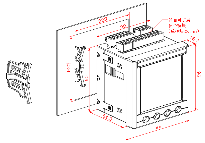 显示面板IP54,需配垫圈; |