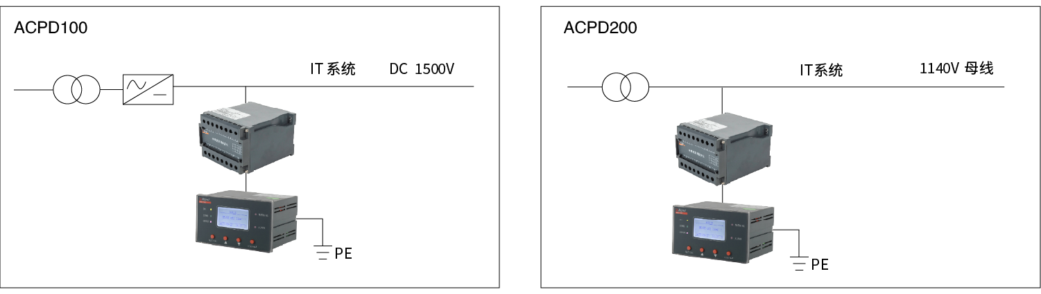 ACPD100适用于单相交流AC690V~1150V和直流DC800V~1760V场景的绝缘监测,ACPD200适用于三相交流3AC 690V~1650V,三相交流带直流元件AC690V~1300V场景的绝缘监测。